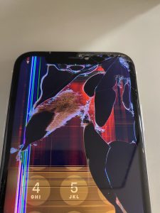 上部、インカメラ付近はガラスが剥がれ落ちてしまい