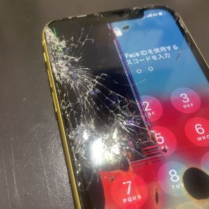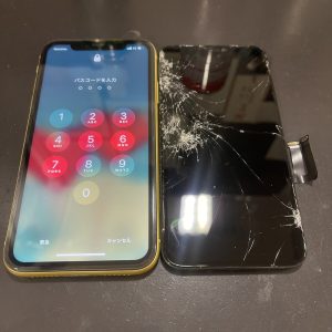 iPhoneXRガラスバキバキ液晶破損修理/枚方市山之上