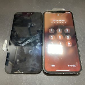 液晶不良になったiPhone12Pro画面交換修理/交野市私部より