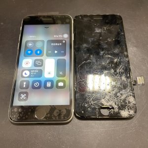 画面バキバキ液晶不良なiPhoneSE2画面交換修理/枚方市茄子作