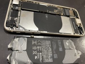 そして、新しいバッテリーに粘着テープをつけて取り付けます。