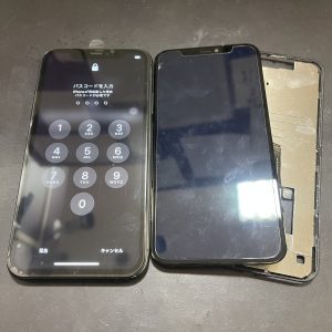 画面が全て外れてしまったiPhone11画面交換修理/枚方市北中振