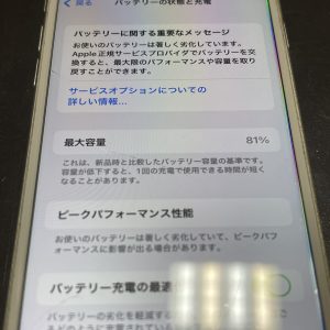 今回お持ち込みのiPhone8は最大容量が81%になっており