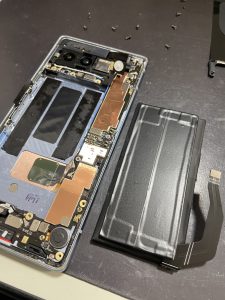 少しヒートガンで温め、バッテリーを外します。