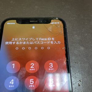 ひび割れてしまったiPhone12mini画面交換修理&ガラスコーティング/枚方市出口より