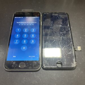液晶不良、操作不良な重度破損iPhoneSE第2世代も画面交換修理で綺麗に!/枚方市渚西より