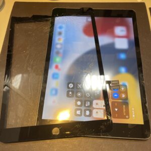 バキバキ割れなiPad第8世代フロントガラス交換修理/交野市私市より