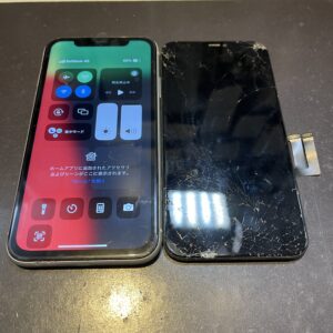 液晶破損で液晶不良iPhone11フロントパネル交換修理/枚方市田宮