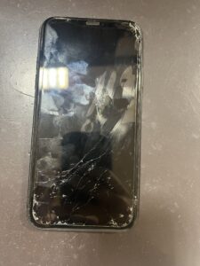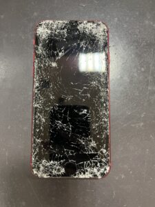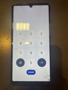 こちらのスマートフォンをみていただくと、全体的な割れが酷いのに加えて、