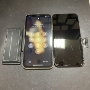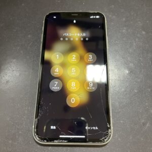 ひび割れiPhoneXRフロントパネル&バッテリー交換修理/枚方市山之上より