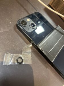 iPhone13のバックラカメラレンズの修理でございます。