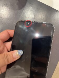 インカメラの部分を見てみると、曇っていたので内部に水が入っていることがわかります。