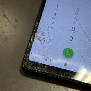 昔に落下させてしまった際に画面がバキバキにヒビ割れてしまったそうで