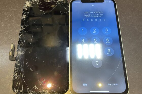 バイクから落下し画面バキバキiPhone12/枚方市伊加賀西町