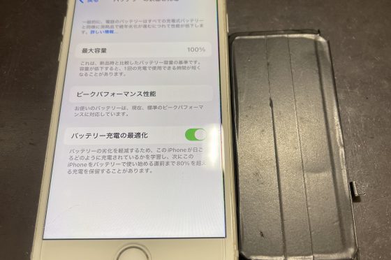劣化したバッテリーのiPhone8修理/枚方市北中振