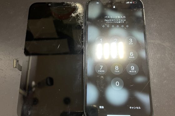 iPhone14+画面交換修理&フレーム調整/交野市神宮寺より