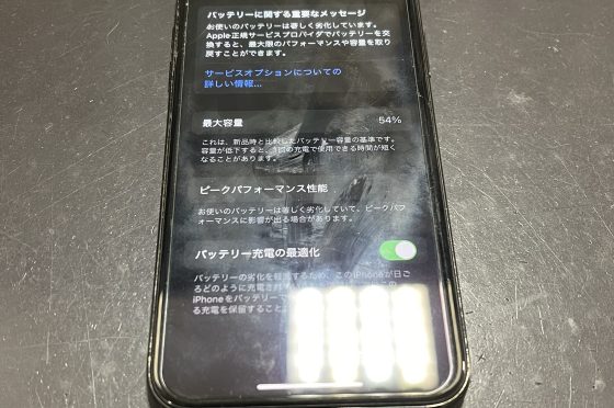 バッテリー最大容量54%!?劣化したiPhoneXバッテリー交換/枚方市伊加賀西町より