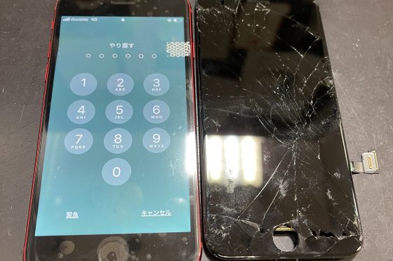 操作不可能になってしまったiPhoneSE3画面交換修理/交野市私部