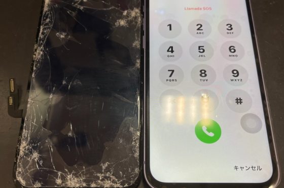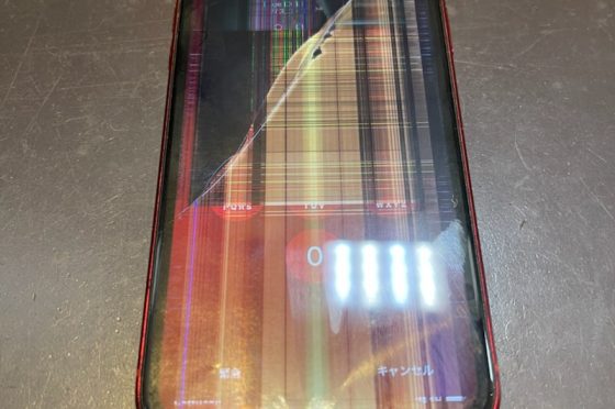 画面がバキバキ液晶不良なiPhoneXRフロントパネル交換修理/交野市私部