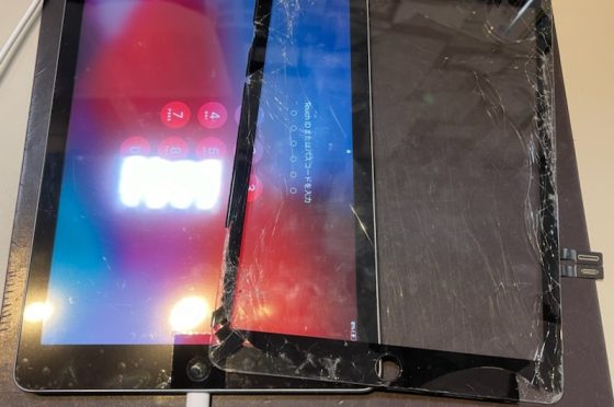 ガラスがバキバキに割れたiPad第6世代交換修理/枚方市山之上