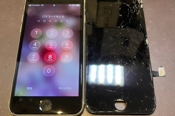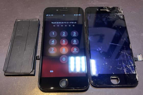 画面が細かくひび割れたiPhoneSE3画面交換修理/枚方市山之上