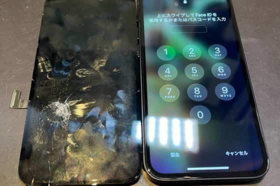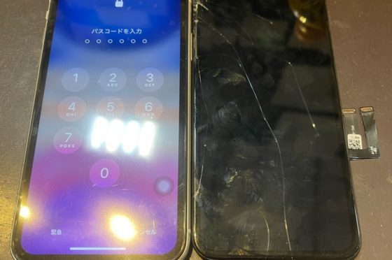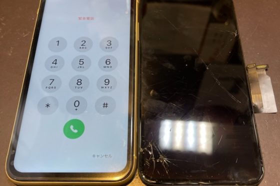 液晶破損したiPhone11画面交換修理/枚方市東中振