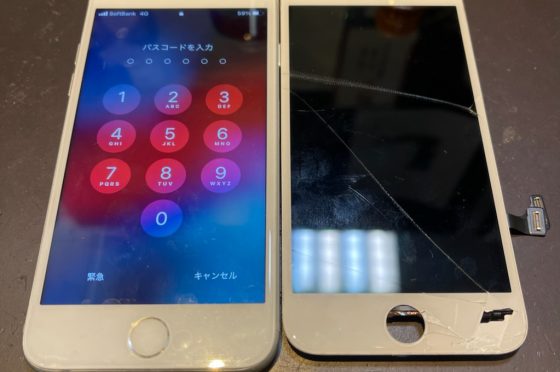 雪で滑ってコケてしまいiPhoneSE第2世代の画面が破損!?/枚方市都岡町