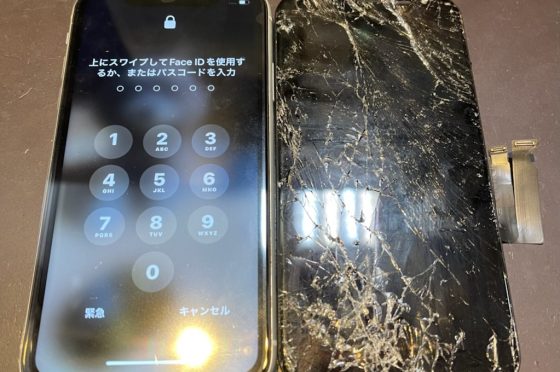 車に轢かれた画面バキバキiPhoneXR修理/枚方市香里園