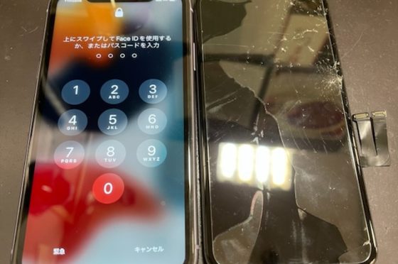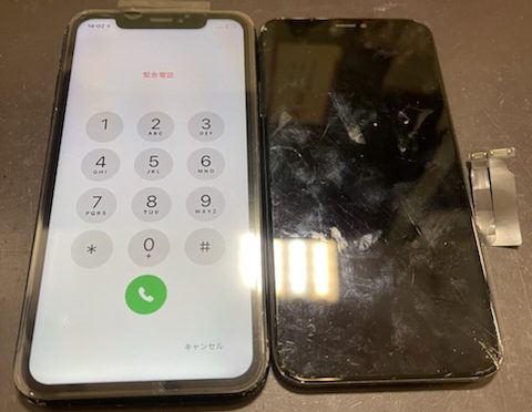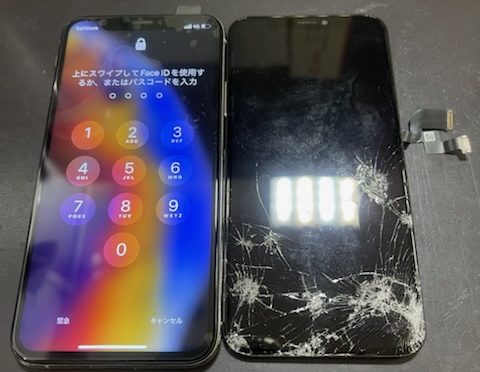 液晶破損してiPhoneX画面交換修理/枚方市出口より