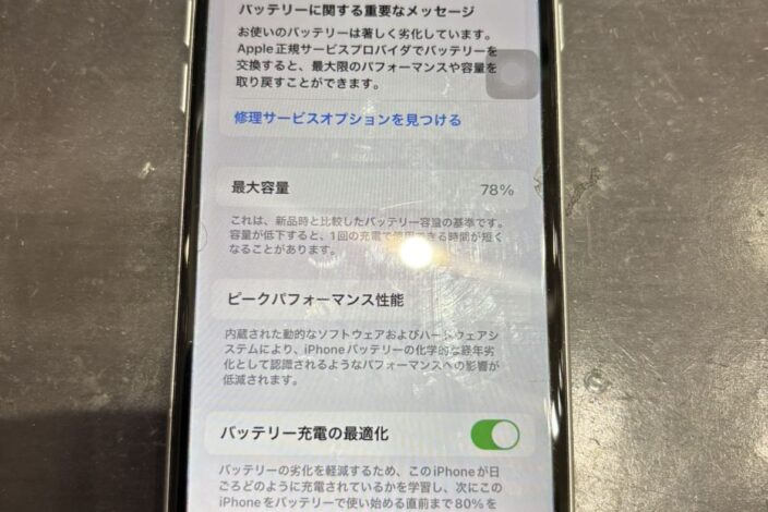 「設定」>「バッテリー」>「バッテリーの状態と充電」で最大容量を確認し、80%未満であれば交換をおすすめします。