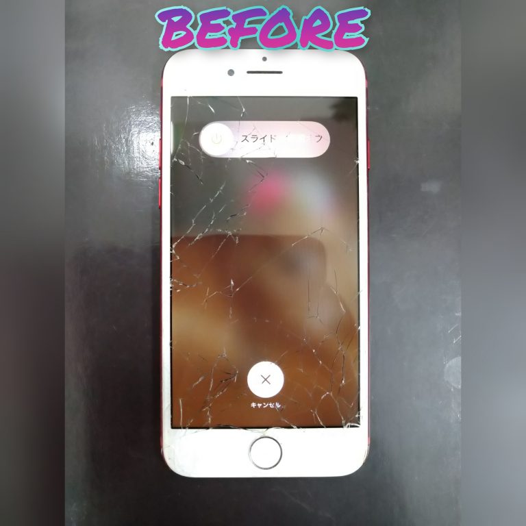 修理前のiPhone7は画面全体がバキバキにヒビ割れてしまっていており、そのまま使うには少し危険な状態になっておりました。