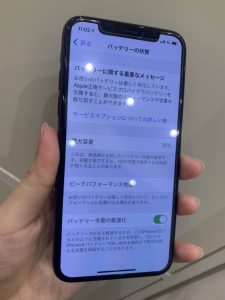 本日お預かりした端末の最大容量を確認すると76%とかなり劣化していたので早急に修理しました。