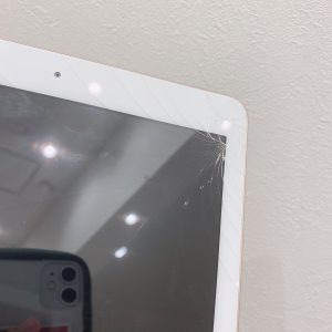 iPadの画面右上から全体にかけて大きくガラスがひび割れています。