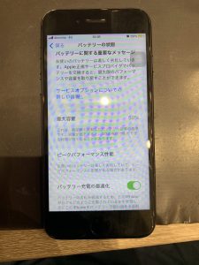 お持ち込みいただいたiPhone7のバッテリー最大用量を確認しますと
