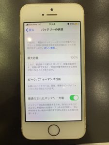 バッテリー交換を行うことで最大容量が100%まで改善しています。