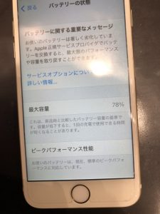 このように、最大容量が78%にまで減ってしまっているiPhone6Sの