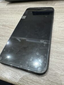 今回お持ちいただいた時は画面がバキバキで何も映らない状態でした。このままだと操作はもちろんできません。それに手も怪我してしまうかもしれません。画面が映らないと動画やSNSを楽しんだり何より連絡できないのも大変ですよね。画面が映らないから見ることはもちろん場合によっては内部まで損傷を起こしている可能もあるんですよ。