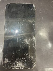 バキバキに割れたiPhone15の画面交換修理
