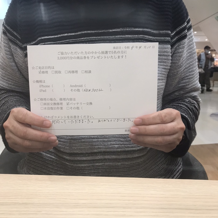 スマホスピタルイオンタウン茨木太田 【お客様の声】NEW3DSLLの修理お受けしました!