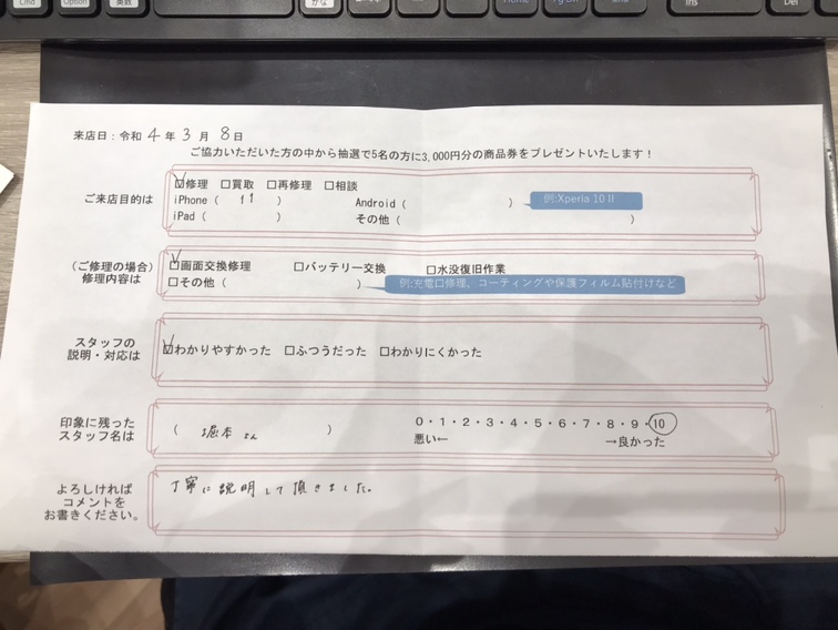 スマホスピタルイオンタウン茨木太田 【お客様の声】iPhone 11の画面交換を行いました。