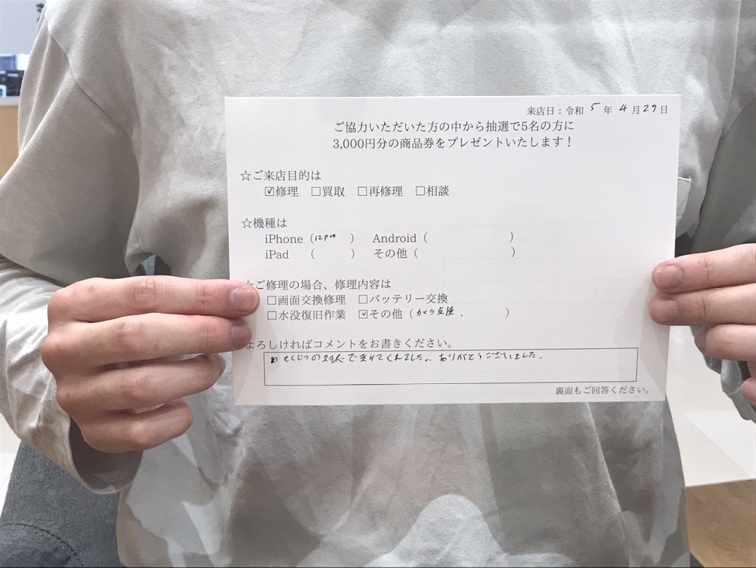そくじつに対応できてくれました。ありがとうございました。