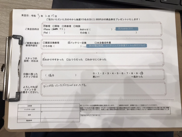 スマホスピタルイオンタウン茨木太田 『お客様の声』iPhoneXsバッテリー交換しました!