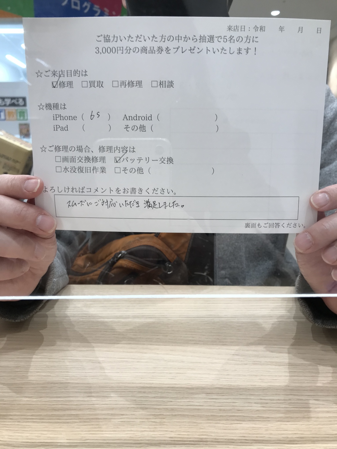 スマホスピタルイオンタウン茨木太田 『お客様の声』iPhone6sバッテリー交換