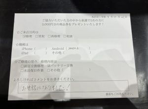 スマホスピタルイオンタウン茨木太田 【お客様の声】AQUOSsense2バッテリー交換しました!