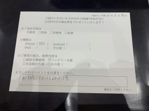スマホスピタルイオンタウン茨木太田 【お客様の声】iPhoneSE2 バッテリー交換しました!