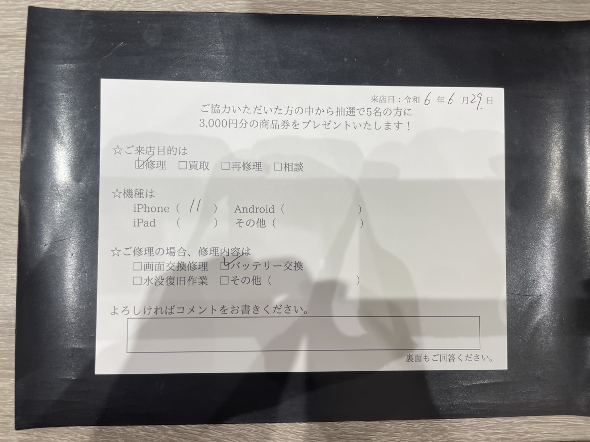 スマホスピタルイオンタウン茨木太田 【お客様の声】iPhone 11 のバッテリー交換を行ないました。
