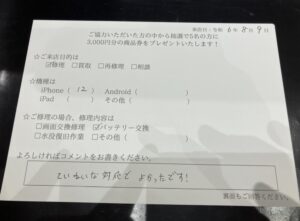 スマホスピタルイオンタウン茨木太田 【お客様の声】iPhone12のバッテリー交換しました。