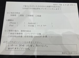 「ていねいな説明・修理と助かりました。 ありがとうございます。」