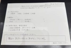 【お客様の声】iPhoneのメンテナンス作業を行いました。