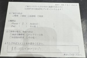 【お客様の声】iPhone 8 バッテリー交換!!